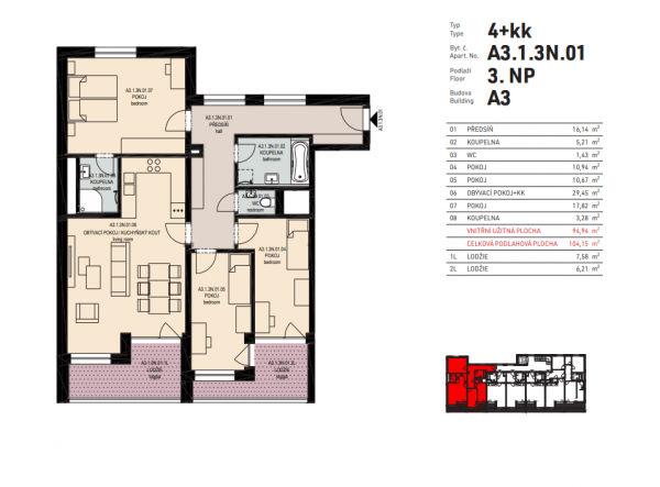 | 3821 | 4+kk | 3 | 94.90m2 | Регистрация |
