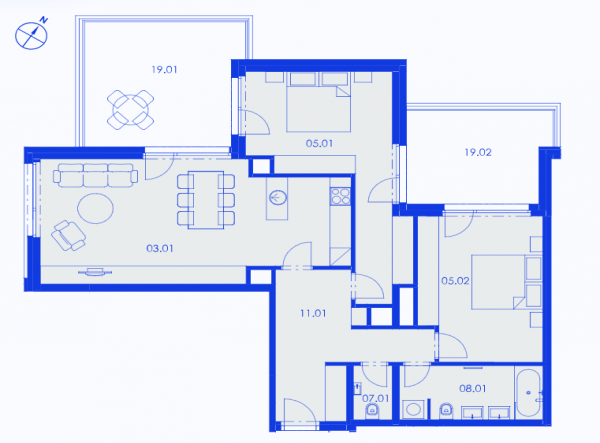 | ID | Планировка | Этаж | Площадь | Балкон/Терраса | Кладовая | Парковка | План | Цена | Запрос |