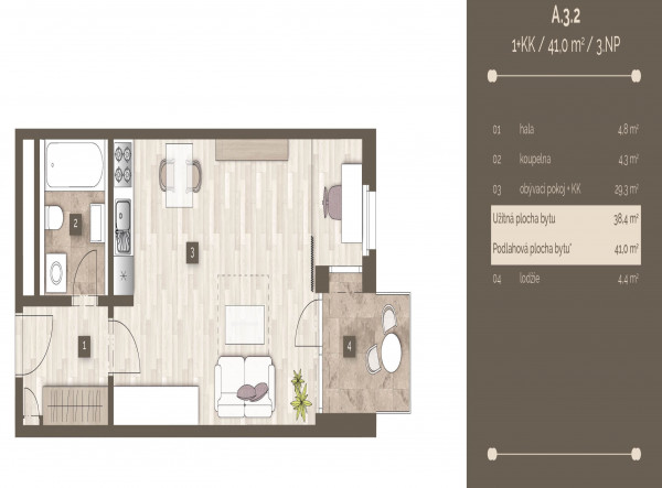 | 4579 | 1+kk | 4 | 41.00m2 | Регистрация |