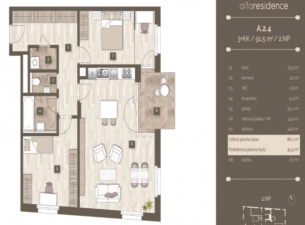 | 4595 | 3+kk | 4 | 84.00m2 | Регистрация |