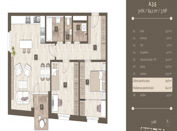 | 4596 | 3+kk | 5 | 84.00m2 | Регистрация |