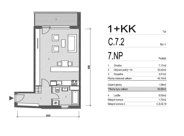 | 3940 | 1+kk | 7 | 48.00m2 | Регистрация |