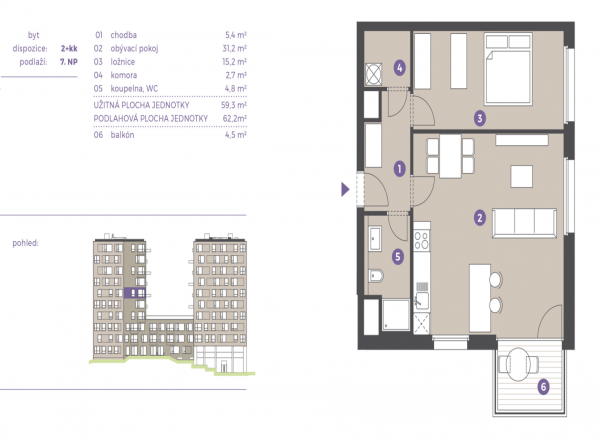 | 3546 | 2+kk | 7 | 62.00m2 | Регистрация |