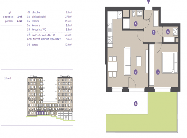 | 3540 | 2+kk | 2 | 55.00m2 | Регистрация |