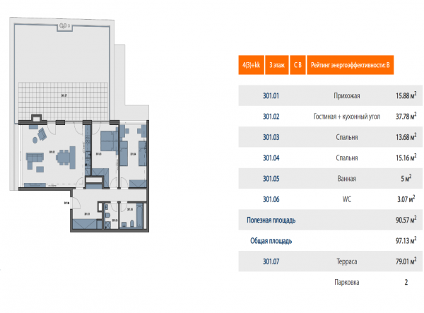 | 4039 | 3+kk | 3 | 97.00m2 | Регистрация |