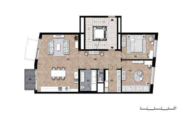 В апартаментах «Самова» предлагается 26 эксклюзивных квартир с планировкой 2+кк и 4+кк и два коммерческих помещения. Центр каждой квартиры – это просторный холл, соединенный со всеми остальными комнатами. У квартир на уровне первого этажа есть собственные сады, у квартир на верхних этажах – балконы, на седьмом этаже находятся лоджии, выходящие на южную и северную сторону. У каждой квартиры также есть своя кладовка и машиноместо в подземном гараже.