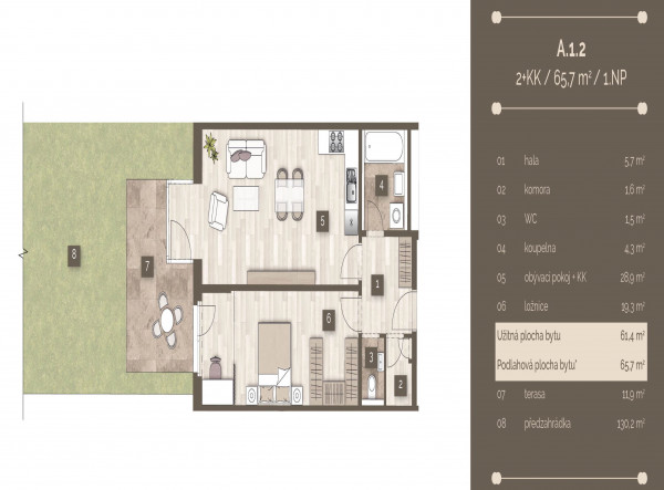 Цены включая НДС. Возможно докупить кладовку 29.000 крон м2. К 2-3-х комнатным квартирам обязательная покупка парковочного места (345.000 крон). Официально квартиры в продаже 17.9.2020.