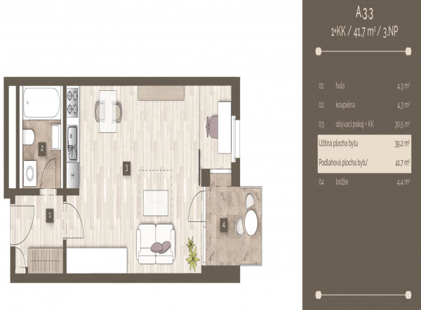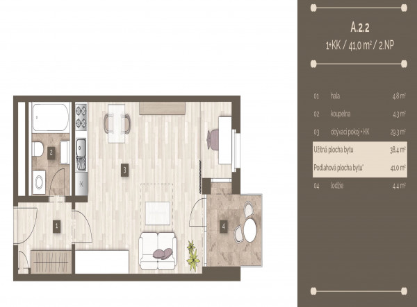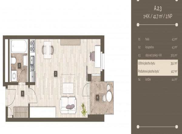 | 4575 | 1+kk | 2 | 43.00m2 | Регистрация |