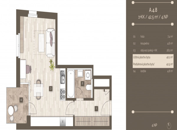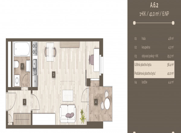 | 4579 | 1+kk | 4 | 41.00m2 | Регистрация |