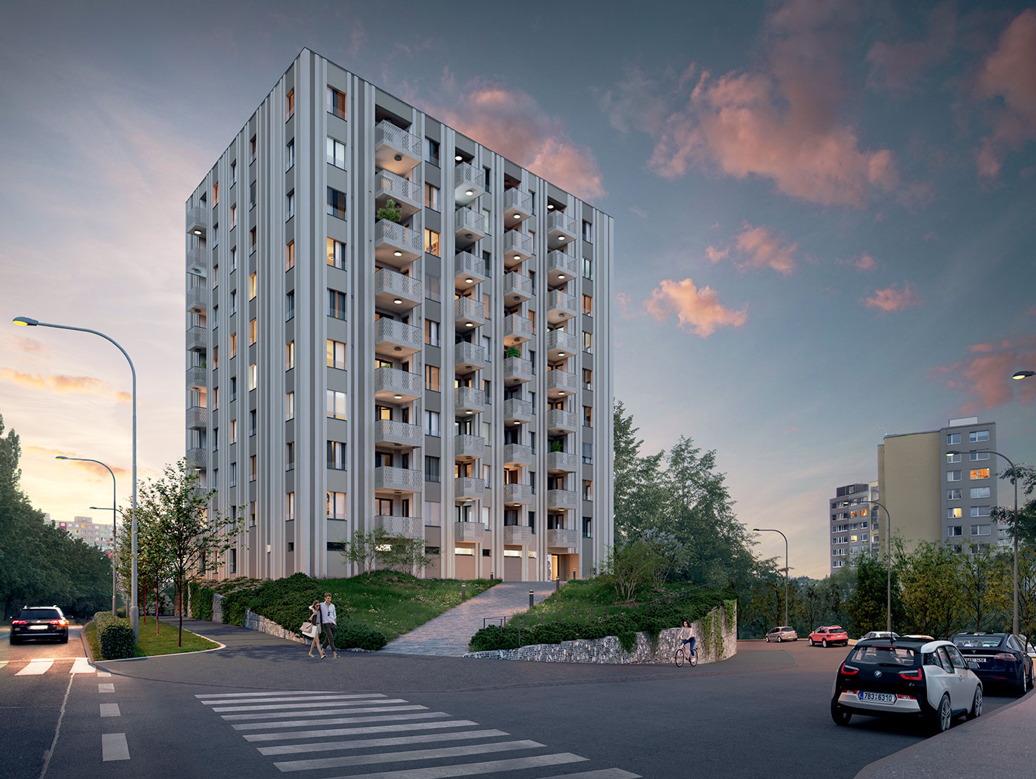 О проекте написано мало, здесь больше надо учитывать его расположение. Практически в каждом районе Праги Вы найдете полную инфраструктуру. Район Стодулки достаточно большой, но имеет удобную доступность до центра города - 15 минут на метро, до которого всего 1 минута.