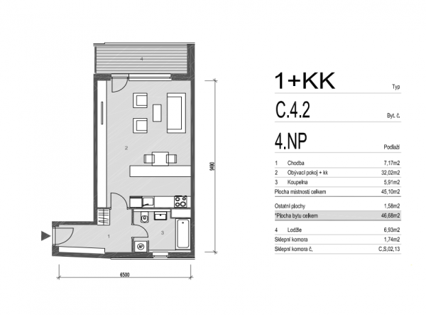 | 4041 | 1+kk | 4 | 48.40m2 | Регистрация |