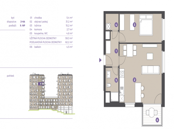 | 3544 | 2+kk | 5 | 60.00m2 | Регистрация |